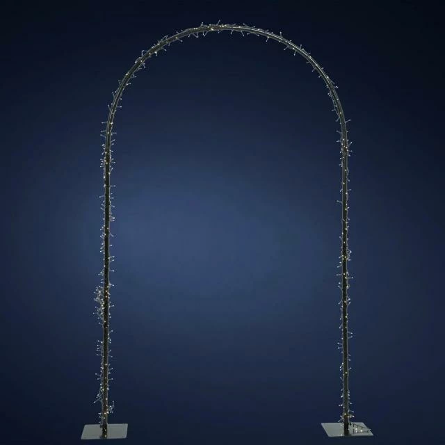 Cette guirlande LED est livrée avec son arche : elle produit un effet garanti à l’intérieur de votre commerce ou même en devanture, car elle peut être posée en extérieur ! Vous pourrez illuminer votre vitrine en permanence ! Les 8 fonctions différentes de clignotement renforcent l’attractivité visuelle et permettent de créer la surprise à tout moment. De plus, la couleur des LED (blanc chaud) offre une lueur douce qui n’agresse pas les yeux. L’arche peut être fixée au sol soit avec des vis (les socles sont percés), soit à l’aide de poids (comme pour nos parasols de marché, réf 45554). 500 ampoules LED taille 5 mm. Coloris noir, couleur des LED : blanc chaud. Alimentation secteur. Longueur du câble : 5 m. Classe IP-44. Qualité CE. L 2,5 x l 130 x H 230 cm.
