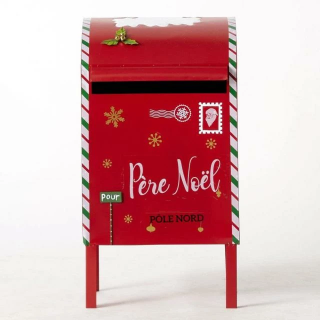 La boîte aux lettres du Père Noël ! Elément clé dans votre déco de Noël, elle n’a pas son pareil pour faire rêver les petits et même les grands. Installée dans votre mise en scène, elle apporte une touche de rêve et de fantaisie… Dans les couleurs classiques de Noël (rouge et blanc) elle a l’avantage de bien se repérer de loin, quelle que soit son emplacement. De belle facture en métal solide, elle repose en excellente stabilité sur ses 4 pieds. Ceux-ci sont striés de rouge et blanc, façon “sucre d’orge”, ce qui ajoute une touche de gaieté. Elle sera bienvenue bien dans un univers gourmand (pâtisserie, confiserie), enfantin (boutique enfants) mais aussi dans divers décors où l’on souhaite apporter un clin d’œil d’originalité.