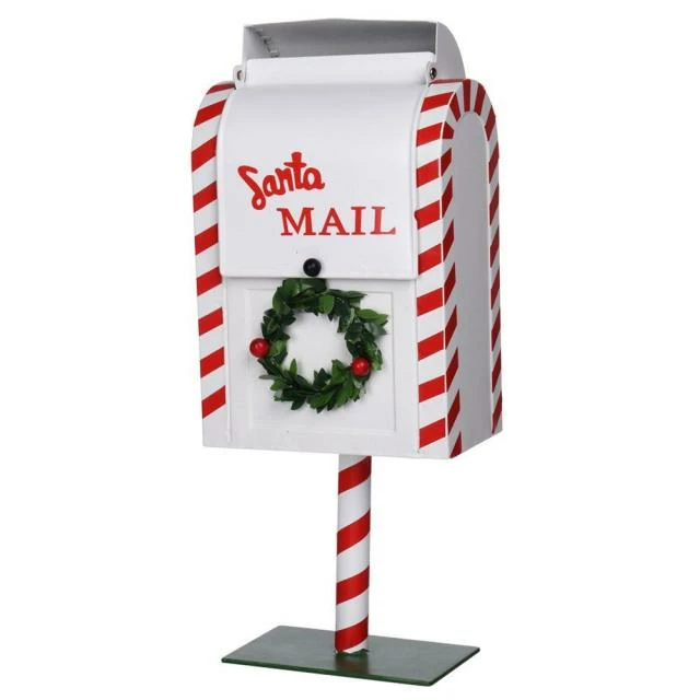 D’un style à l’anglaise (“mailbox”), cette boîte aux lettres est agrémentée d’une couronne de verdure. Rouge, vert, blanc : ce sont des couleurs parfaitement adaptées au thème de Noël et de fin d’année ! De belle facture en métal, solide sur son socle, elle se posera partout, en fonction de vos mises en scène. Sa base, striée de rouge et blanc, façon “sucre d’orge”, ajoute une touche de gaieté. On l’imagine bien dans un univers gourmand, mais aussi dans divers décors où l’on souhaite apporter une touche de complicité originale. Et elle a un “plus” ludique : exactement comme une vraie boîte aux lettres, elle peut s’ouvrir pour venir y glisser des lettres ou tout autre petit élément. Dim. 37 cm. Rouge, vert, blanc : ce sont des couleurs parfaitement adaptées au thème de Noël et de fin d’année ! 2 coloris, choix aléatoire : Le choix du coloris est fait lors de la préparation de la commande en fonction de la disponibilité des stocks.