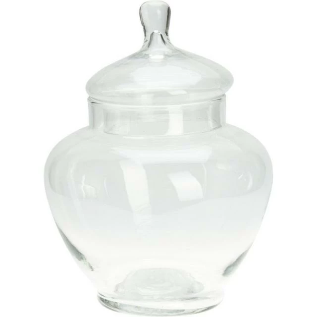Dans la grande tradition des arts de la table, ce bocal avec couvercle offre un écrin princier à vos biscuits maison et gourmandises. La transparence du verre met en valeur vos créations gourmandes ainsi que leurs couleurs fruitées. Ce qui est idéal pour susciter l’envie ! De plus, le couvercle les protège totalement des contacts, des odeurs, des poussières ou même des insectes. Elle offre une vue à 360 ° de vos produits exposés et évite qu’ils ne dessèchent trop vite. Remarquez aussi l’élégance de son style : de son socle jusqu’à la sommité de son couvercle : tout est dessiné en jolies courbes, dans l’esprit des bonbonnières d’antan. Sur une table, un plan du comptoir ou en vitrine, c’est aussi une belle pièce décorative à part entière, qui apportera une touche de charme et de raffinement : dans tout commerce, quel qu’il soit, il peut donc être détourné en contenant d’exposition et sa transparence vous permettra à loisir de jouer avec des contenus colorés et contrastants. Agréé contact alimentaire.Ø21 x H 28 cm.
