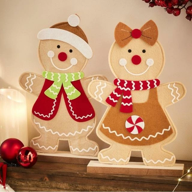 En bois et feutrine, ce sympathique bonhomme “pain d’épice” est surprenant d’originalité. Il se pose partout aisément grâce à son socle en bois. Avec son joli sourire, il est vraiment à craquer de tendresse ! Il apportera une touche de complicité dans votre déco, une touche émotionnelle précieuse au moment des fêtes de Noël ! D’une finition soignée et riche dans les détails (coiffe, écharpe, nœud, etc…), il porte les couleurs d’un Noël traditionnel, rouge et beige. Quant à sa matière cotonneuse, douce et douillette à souhait, elle convient particulièrement bien à l’univers cocoon de Noël.