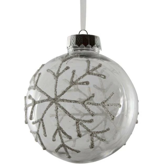 Suspendue à votre sapin de Noël, cette “boule flocon” sort vraiment des sentiers battus : durant les fêtes de fin d’année, elle vous distingue des ambiances classiques. En effet, sa transparence donne un aspect “3D” aux motifs flocon rehaussés de givre. Le rendu est magique : votre espace de vente semble plongé dans l’univers feutré et cotonneux des paysages d’hiver, calmes, apaisants et féériques. En plus, cette “boule flocon” est incassable, elle est donc parfaite pour votre usage professionnel : elle ne craint pas les manipulations lors du montage/démontage et aussi en magasin, à portée du passage clients. N’hésitez pas à en commander en nombre, afin d’en suspendre un peu partout (en vitrine, en rayons, en zone caisse), et de créer ainsi un univers homogène tout au long de votre parcours client. Diam. 10 cm.