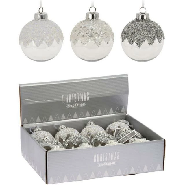 C’est l’idéal pour habiller tout votre magasin d’une ambiance festive et féérique, dans une parfaite cohérence. Assortiment de boules incassables, blanche, argentée, transparente. Choix aléatoire : le choix de la finition est fait lors de la préparation de la commande en fonction de la disponibilité des stocks. Poids 72 g. Diam. 12 cm.