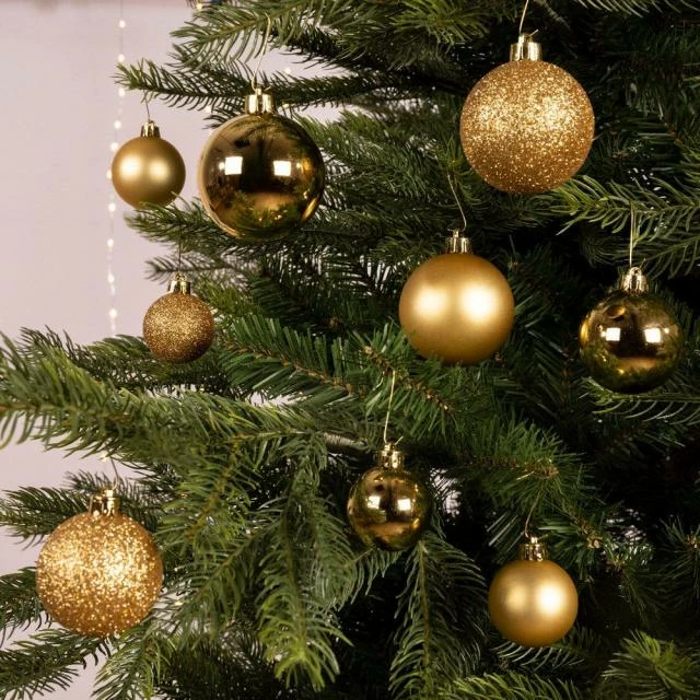 Des boules incassables, c’est vraiment l’idéal pour un usage professionnel : elles sont plus résistantes aux manipulations lors du montage/démontage et aussi en magasin, lorsqu’elles sont à portée du passage clients. De plus, vous apprécierez la diversité offerte dans cet assortiment très bien pensé : il réunit 6 tailles différentes et 3 finitions distinctes : mat, brillant et pailleté. Suspension par fil doré. Coloris or clair. Dim. : 4 x 60 mm ; 3 x 60 mm ; 4 x 50 mm ; 3 x 50 mm ; 4 x 40 mm ; 3 x 40 mm.