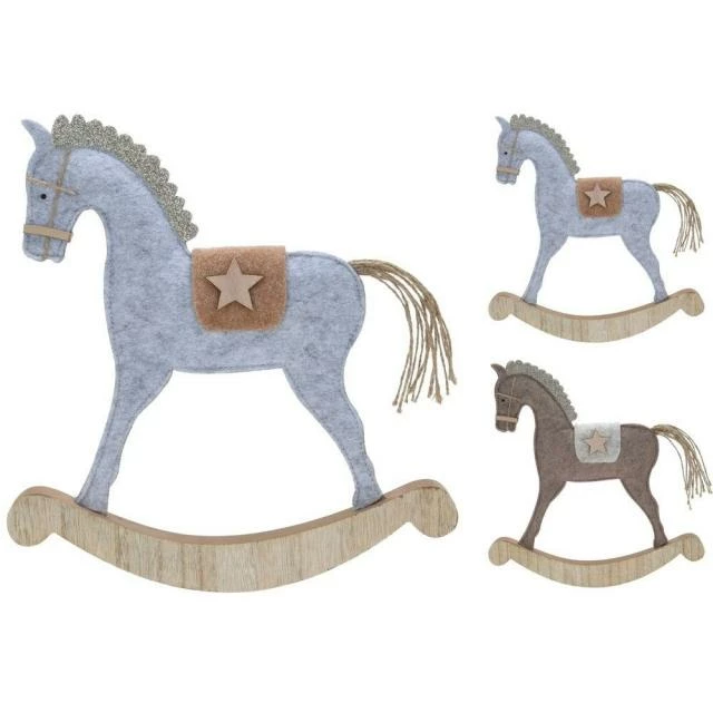 En bois et feutrine, ce très joli cheval à bascule est idéal pour votre décoration de vitrine sur le thème des fêtes de fin d’année. Il attirera l’œil des passants de tout âge, pas seulement les enfants ! En effet, sa finition très soignée est remarquable de réalisme. Richement paré aux couleurs de Noël, il se pavane fièrement sur sa luge de parade. Avec ce bel objet qui rappelle les vieux jouets d’antan, vous pourrez créer une mise en scène pleine de poésie, où les produits exposés seront ainsi bien mis en valeur.