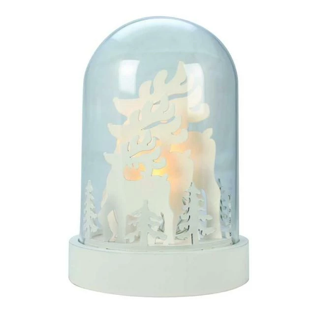 Cloche en verre avec décoration rennes LED blanc chaud à piles.
