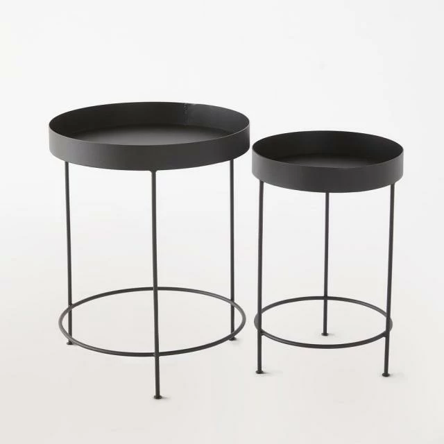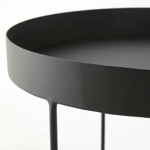 Table d’exposition pour vos produits, table de travail, console de présentation, leur modularité est idéalement étudiée pour aménager votre espace au gré de vos besoins. Montées chacune sur trois pieds solidement soudés à leur base par un cerclage de renfort, elles offrent une excellente stabilité au sol : pas de danger qu’elles deviennent bancales et vacillent sur leurs bases. En plus, ces tables s’empilent pour un gain d’espace et un rangement instantané dès lors qu’elles ne servent pas. Consoles rondes finition métal noir mat. Diam. 30 x H. 45 cm ; Diam 40 x H. 50 cm.