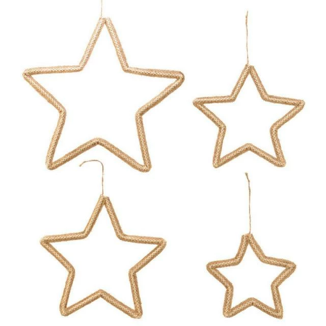 Ce set de 4 étoiles en jute fera souffler l’esprit “nature forest” dans votre vitrine ou au cœur-même de votre commerce. Le jute est une matière qui inspire la tradition et l’authenticité : aussi, inviter cette matière pour habiller des étoiles de Noël, c’est assurément une très belle idée ! Finement ouvragées, ces étoiles ont l’art d’évoquer le style “fait main”. Vous les suspendrez en vitrine, au plafond ou sur diverses structures de votre agencement de fête. Tout au long de votre parcours client, elles apporteront une touche de gaieté et de naturalité. Diam 40 x H 0,5 cm / Diam 30 x H 0,5 cm / Diam 25 x H 0,5 cm / Diam 20 x H 0,5 cm.