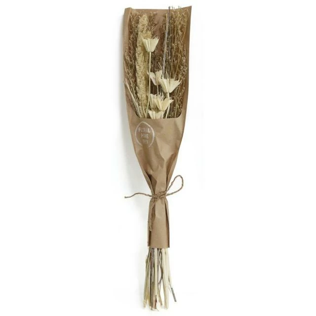 Ce bouquet suspendu de fleurs séchées est dans la grande tendance déco du moment. Un classique intemporel qui revient en force actuellement ! Aussi n’hésitez pas à en commander plusieurs, afin d’en disséminer au gré de votre parcours client. C’est la solution idéale pour habiller une zone murale, un plafond ou un espace caisse : vous pourrez en poser ou en suspendre à l’envers, en hauteur. Tout au long de l’année, ces fleurs champêtres distilleront en permanence cette note de charme, ce parfum de nature, si précieux pour vos clients. Et cela sans nécessité d’entretien ! Enveloppé dans du kraft et suspendu par une cordelette, ce bouquet “nature” renforce l’aspect d’authenticité que vous souhaitez donner à votre espace de vente. Blés et plantes séchées. Haut. 60 cm.
