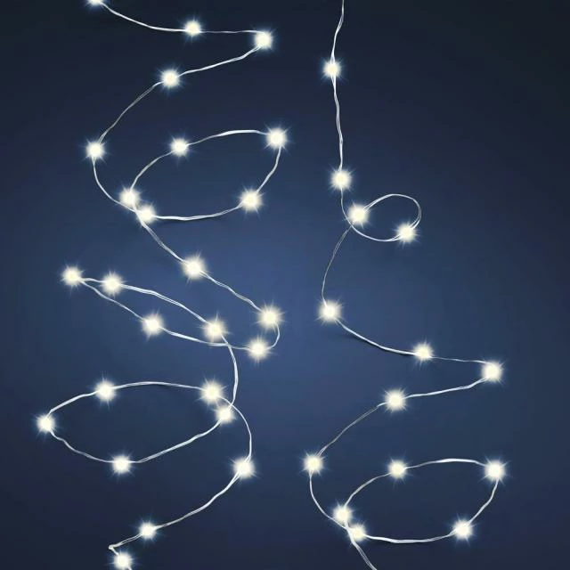 Avec cette guirlande LED, vous pourrez illuminer votre vitrine en permanence ! Les 8 fonctions différentes de clignotement renforcent l’attractivité visuelle et permettent de créer la surprise à tout moment. Son minuteur vous offre jusqu’à 6 heures d’autonomie. De plus, la couleur des LED (blanc chaud) offre une lueur douce qui n’agresse pas les yeux. Très résistante à l’usage, elle peut être posée en extérieur. 100 micro LED. Câble coloris argent, couleur des LED : blanc chaud. Distance entre la 1ère et la dernière ampoule : 4,95 m. Ecart entre chaque ampoule : 1 cm. Fonctionne avec des piles, 1 set inclus. Autonomie 180 h. Minuteur : 6 h. Classe IP-44. Qualité CE.