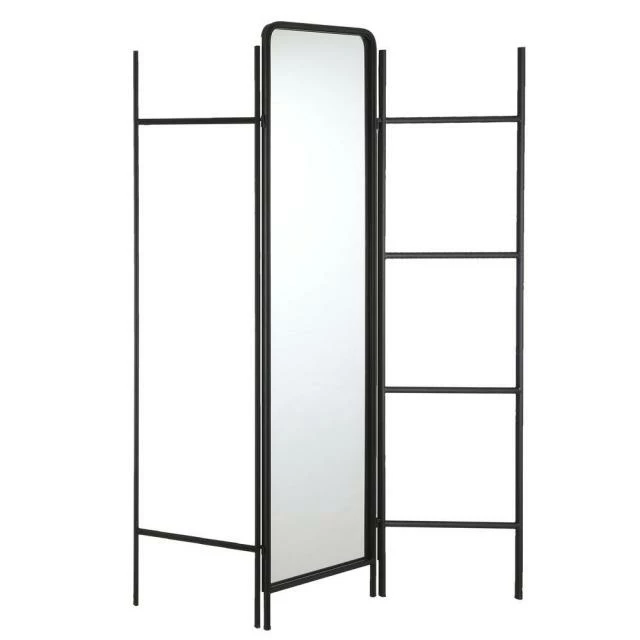 D’inspiration industrielle et contemporaine, ce paravent miroir est aussi discret que très fonctionnel. Il permet de délimiter des espaces ou animer une zone de vente. Le large miroir de forme allongée permet aux client(e)s de se voir de la tête au pied. Remarquez aussi la présence des barres penderies qui sont particulièrement astucieuses : vous pouvez, d’un côté, suspendre les cintres à vêtements et, de l’autre côté, les accessoires du type foulards, écharpes, cravates. Cela pourra aider le client dans sa recherche d’associations de tenues et ainsi augmenter le panier moyen. L 138 x P 3 x H 171 cm.