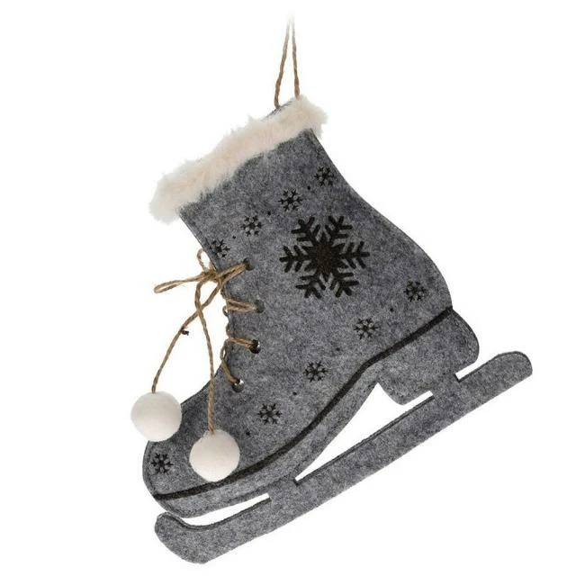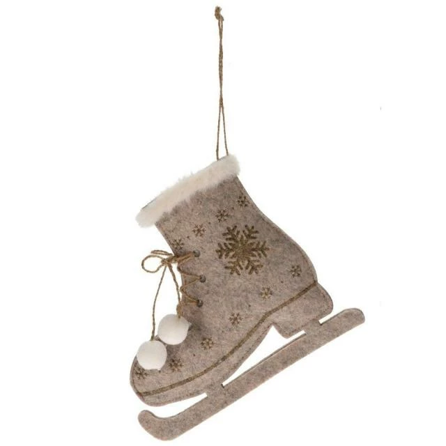 Ce patin à suspendre sera bienvenu dans vos mises en scène de fin d’année. Comme un vrai patin miniature, la précision des détails atteste du soin apporté à ses finitions. Et il est rehaussé de pompons et de flocons de neige, ce qui ajoute un brin de fantaisie. Quant à la corde de jute qui lui sert d’attache, elle apporte une touche de tradition et de nature. Cela en fait un bel objet décoratif plein d’originalité à accrocher à votre sapin de Noël. En plus, les tons gris/marron conviennent bien à la période “cocoon” des fêtes de fin d’année. N’hésitez pas à en commander en nombre : ils trouveront leur place un peu partout pour égayer votre espace de vente (en vitrine, sur un mobilier, une structure de votre déco ou un mur). Dim. 13 cm. 2 coloris, choix aléatoire : le choix du coloris est fait lors de la préparation de la commande en fonction de la disponibilité des stocks.