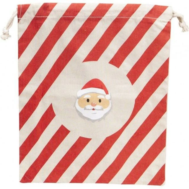 Remise ???? Sac En Coton Raye Rouge Et Tete De Pere-noel Avec Cordon – 30×38 Cm – Par 300 ⭐