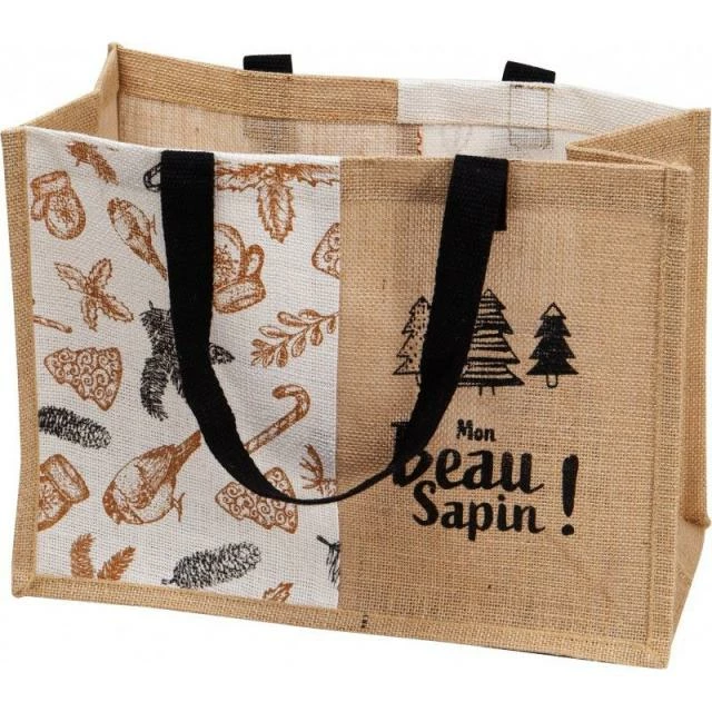 Meilleure vente ???? Sac Jute Naturel Deco Sapin Noir Et Blanc, 2 Anses Noires -37x19x27 Cm – Par 70 ????