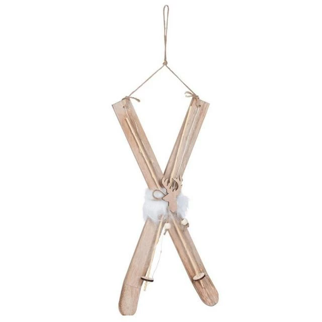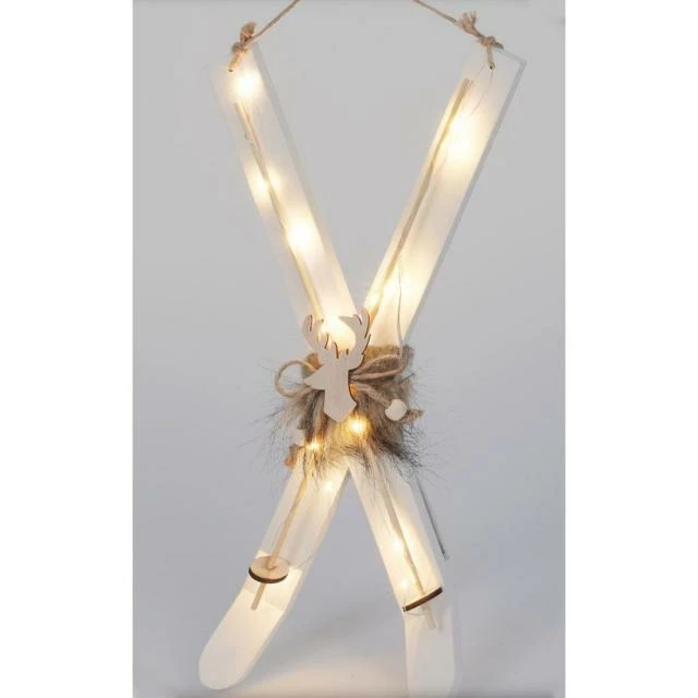 Cette décoration lumineuse à suspendre représente une paire de skis en bois munie de cordes qui vous permettra de l’attacher où vous voulez : sur un sapin de Noël, bien sûr mais aussi en vitrine, sur un mobilier, une structure de votre déco ou un mur. Elle est dotée de 15 LED permettant de la rendre plus voyante, plus remarquable, quel que soit l’endroit où vous la placerez. Comme de vrais skis miniatures, la précision des détails atteste du soin apporté aux finitions. Le bois naturel apporte la touche traditionnelle toujours très appréciée en période de Noël. Couleur des LED : blanc chaud. Fonctionne avec 2 piles AAA, non incluses. Dim. 42 cm. 2 coloris, choix aléatoire : le choix du coloris est fait lors de la préparation de la commande en fonction de la disponibilité des stocks.