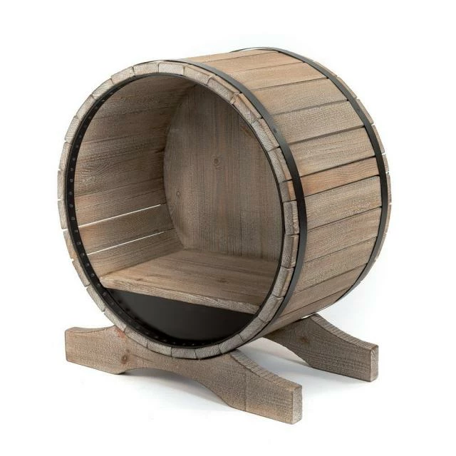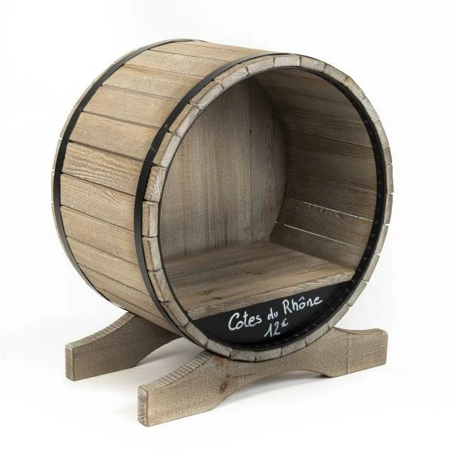 Tonneau décoratif stable sur 2 supports en bois